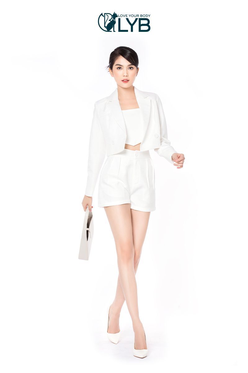 - Áo được thiết kế mới lạ khi kết hợp cùng vest trắng croptop bên ngoài và Quần short xòe giúp set đồ thêm mới mẻ, trẻ trung hơn