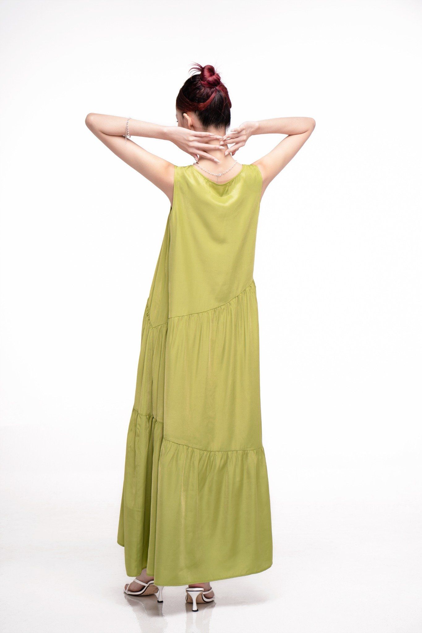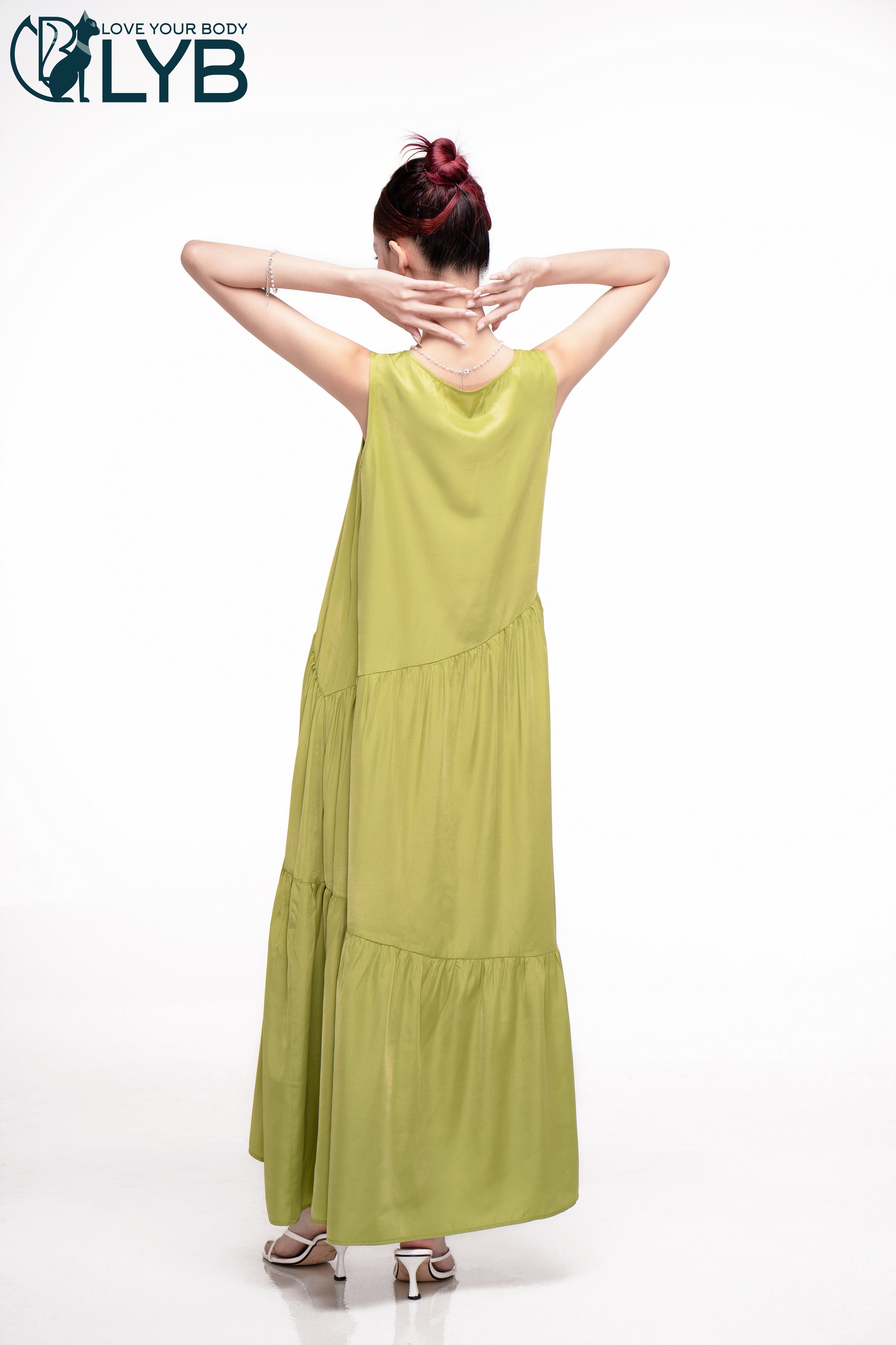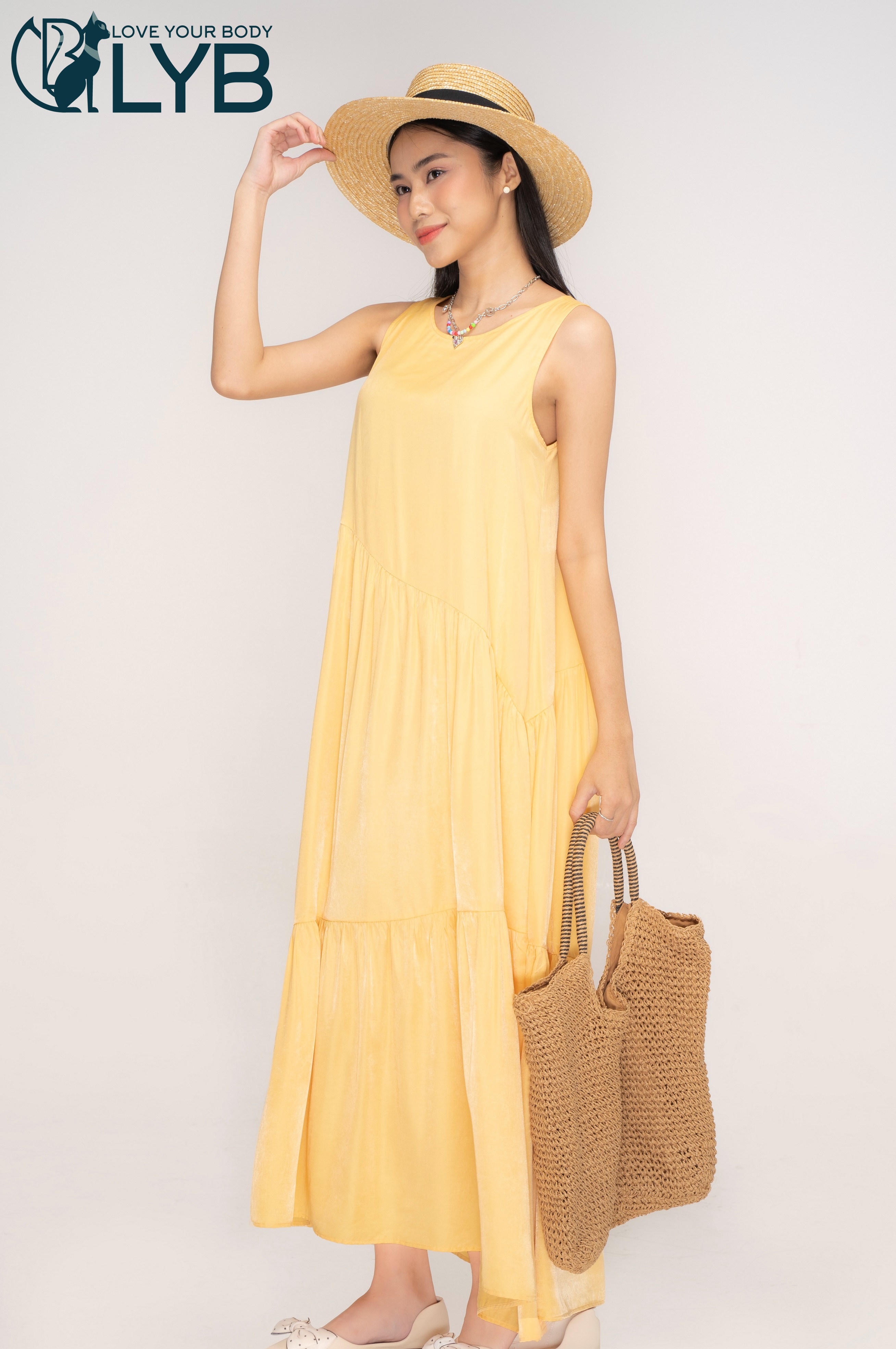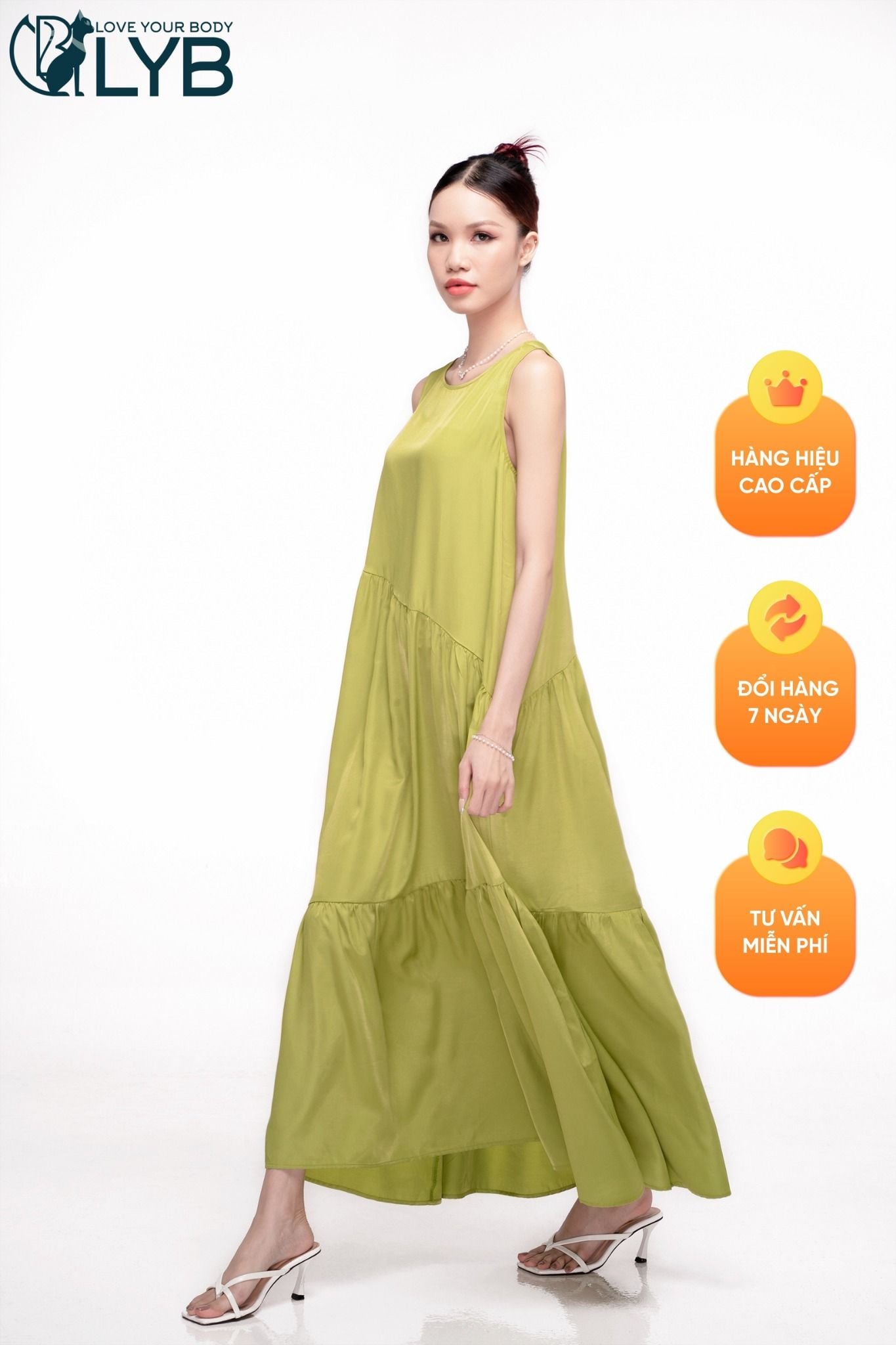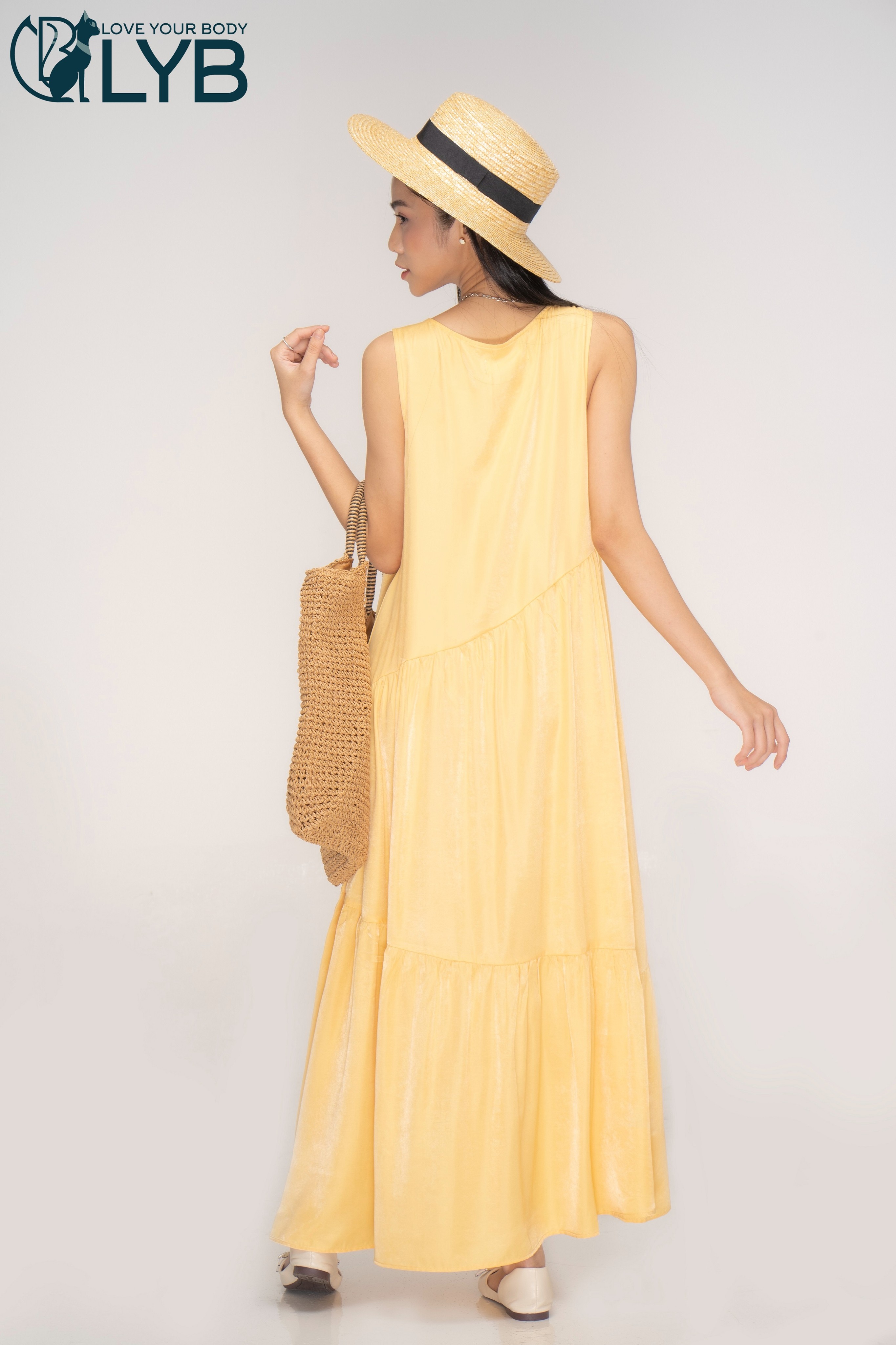 . Đầm không tay dáng maxi xòe 2 tầng dún.
