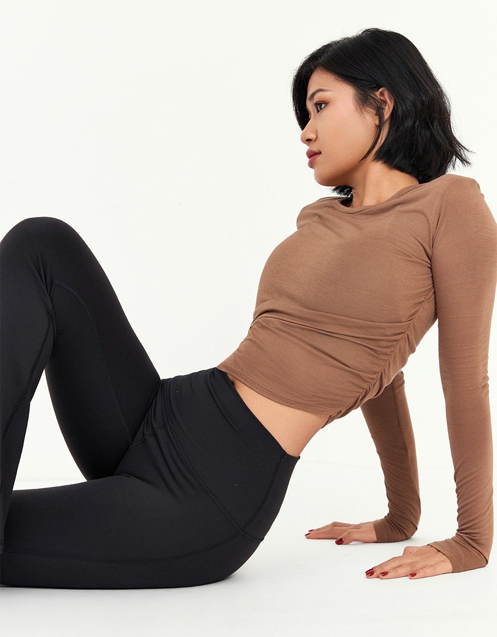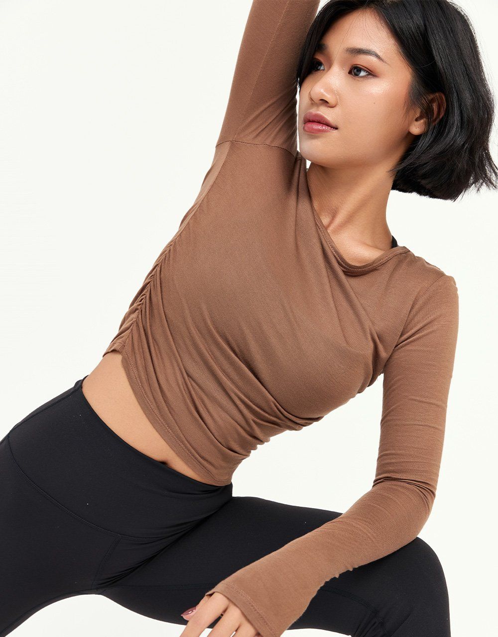 Màu nâu đất dịu mắt, dễ phối cùng quần tập, short hoặc quần jeans cạp cao.