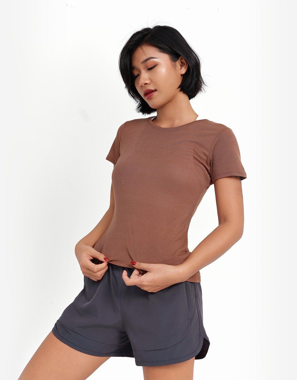 ✔ Form dáng suông vừa vặn, tay ngắn rơi tự nhiên – Không ôm sát, thoải mái vận động.