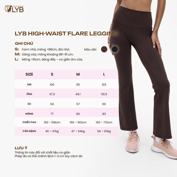 LYB - Quần Legging Ống Loe Nữ Cạp Cao | Đồ Tập Gym, Yoga, Chạy Bộ | Co Giãn 4 Chiều, Tôn Dáng, Hack Dáng Chân Dài