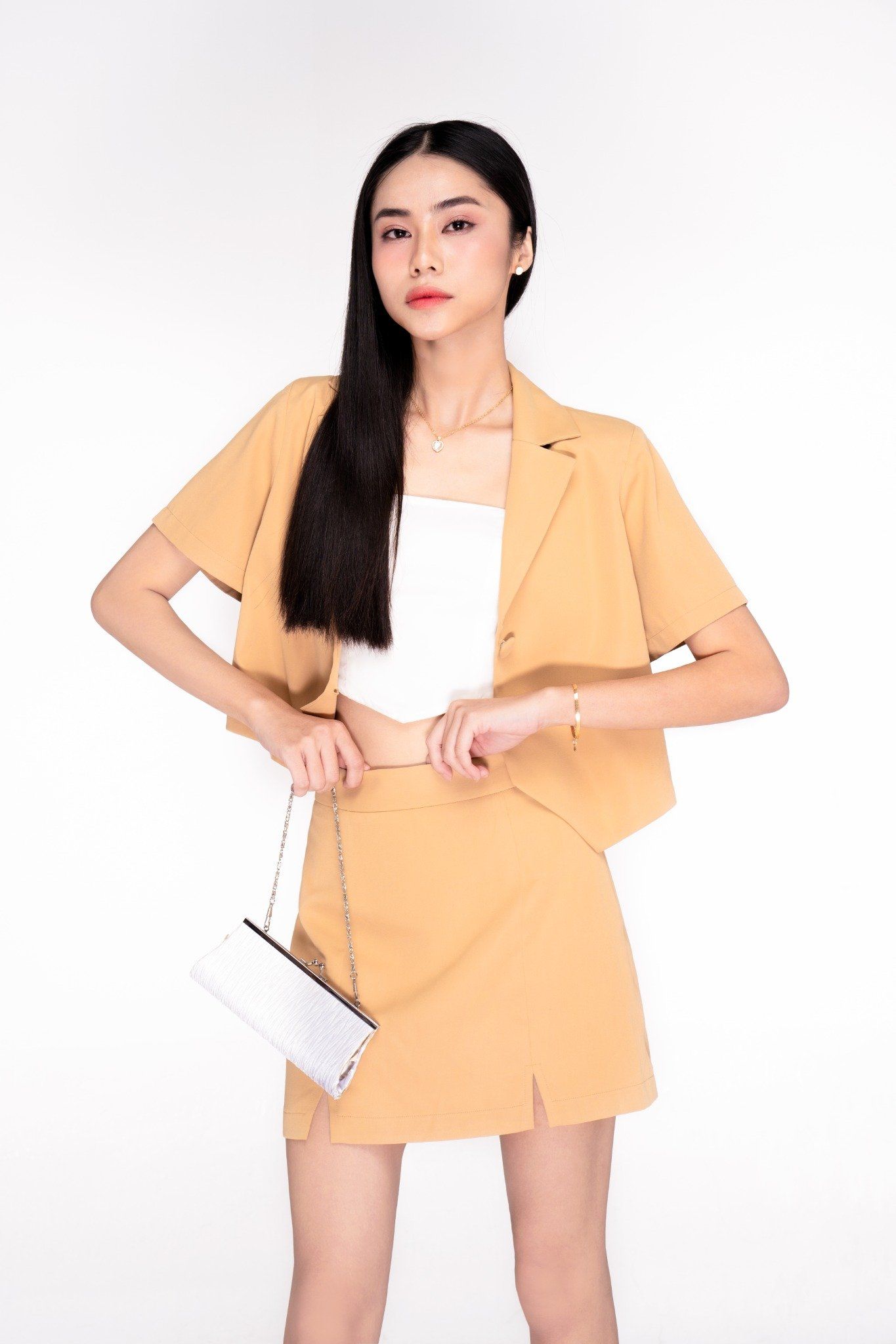 . Combo 2 món cực xinh với phần váy xẻ 2 bên, dáng ngắn siết eo nhẹ.