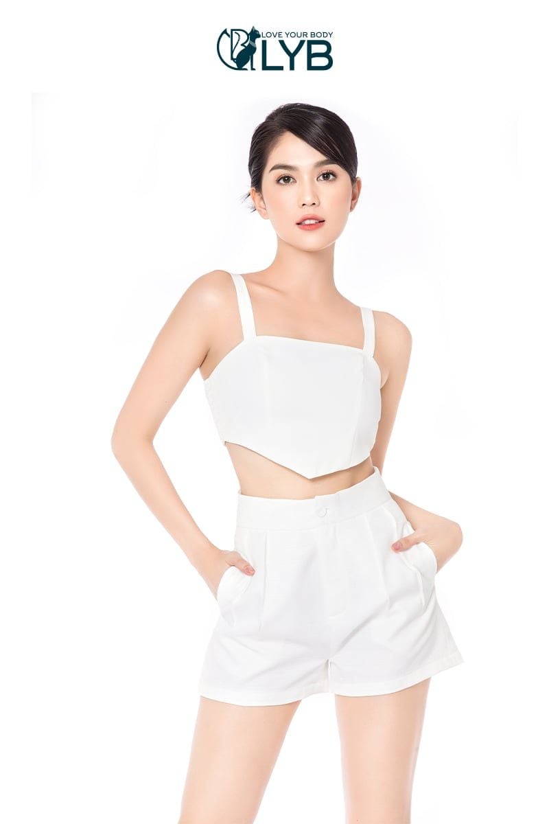 - Áo vest trắng crop với thiết kế mới lạ kết hợp cùng bra vô cùng cá tính, ấn tượng.